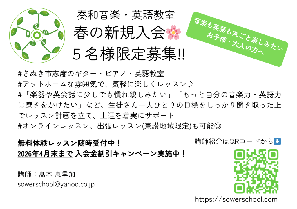 この春、ささやかではありますが、新規入会5名様限定の募集をさせていただきます。
